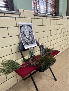 Building altars together is another way that vigil spaces spiritual, creative, and emotional relief after a loss. Community altar builds can include gathering loved ones and community members to literally build an altar together. Community altar builds often take place in public spaces and or the place near where the death occurred. When bereaved people gather, they bring altar supplies, and throughout the time of the build, anyone who wants to can place a special item on the altar. Mourners often remember more than one person at a time at these events, and folks take time to speak their loved one’s name into the space. Memories, favorite colors, and happy and sad times also get spoken into the space. With each word, we breathe memory and life back into ourselves so that our people are not forgotten. Working with others to collectively build an altar is another opening for emotional and creative relief. The lives lived by our dead comrades come back to life as we place sacred and meaningful items, arranged like a collage of memories. Emotional relief is essential to resisting oppressive regimes because folks are having to traverse grief and show up for those who are still here, including ourselves.