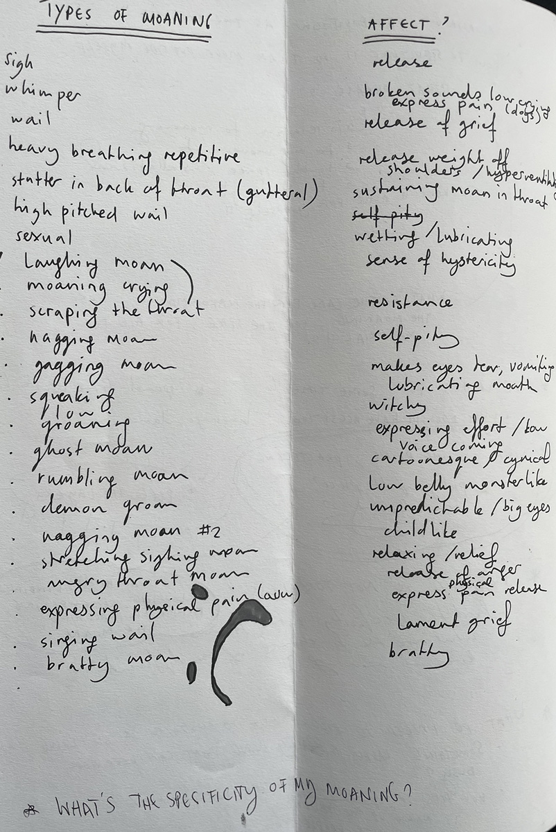 [4] I like to think of the moan as an umbrella sonic expression for these other sounds that express the affective state of grief.