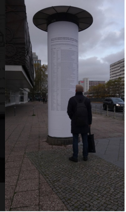 Like the CPB’s The Dead Are Coming campaign, The List memorializes those whose deaths may otherwise go unnoticed or ungrieved by the wider public, seeking to give them greater visibility and legibility. By disrupting the monopoly that official powers have tried to exercise over the memories of the dead, it also challenges dominant conceptions of the nation that are limited to those that the state acknowledges and counts as its own (Keenan and Mohebbi 2020). As an ephemeral and peripatetic document that appears in different iterations across the European continent, The List functions as a deterritorialized counter-monument to the dead. For those it names, often individuals whose bodies were lost at sea or buried in anonymous graves, it serves as a “distinctive, iterant resting place” (ibid., 167).