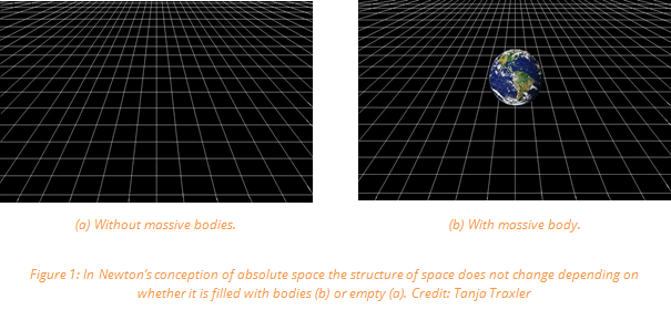 Newton dominated the understanding of space from the 17th century on, until it was pushed aside by Einstein’s general relativity theory at the beginning of the 20th century. Nonetheless, Newton’s mechanics has remained to be of major importance and is referred to in debates still today.[4]