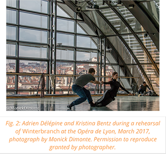 In March 2016, I had the opportunity to attend three weeks of rehearsals for the reconstruction of one of Merce Cunningham’s most controversial works, Winterbranch, at the Lyon Opera Ballet.[1] Winterbranch was choreographed for the Merce Cunningham Dance Company’s first major tour and was first performed in New York, just before the tour began, in 1964. It is a work that fell out of the Merce Cunningham Dance Company’s repertory fairly early, perhaps because it was too firmly connected not only to a particular phase in the development of Cunningham’s aesthetic but also to the particular historical moment known as “the 60s” when the relation of art to context—especially political context—was on everyone’s mind.[2] The Director of the Lyon Opera Ballet conceived of the Ballet’s spring program as an homage to the experimental dance of the 1960s; he chose to pair Winterbranch with Lucinda Childs’s Dance, a bright, brisk, almost antiseptic minimalist piece from 1979 that contrasts sharply with Cunningham’s somber, eery, and in some ways more engaged minimalist work. Jennifer Goggans, a former Cunningham dancer and presently an active reconstructor of his works, arrived in Lyon in mid-March to begin training the dancers in Cunningham technique. From the first day of rehearsals I was able to watch her guide Lyon’s balletically trained, exquisitely skilled dancers toward a performance of Winterbranch that, I believe, remained faithful to its rebarbative, even gritty nature, despite the unavoidable change in reception context.